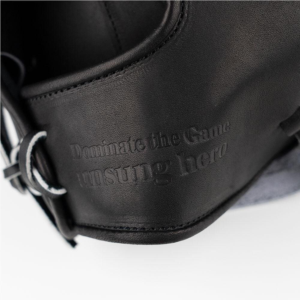 ラベルは小指側に配置し、ミットの被りを防ぎつつ、見た目もスマートに。シンプルながら存在感のある、飽きのこないデザインです。