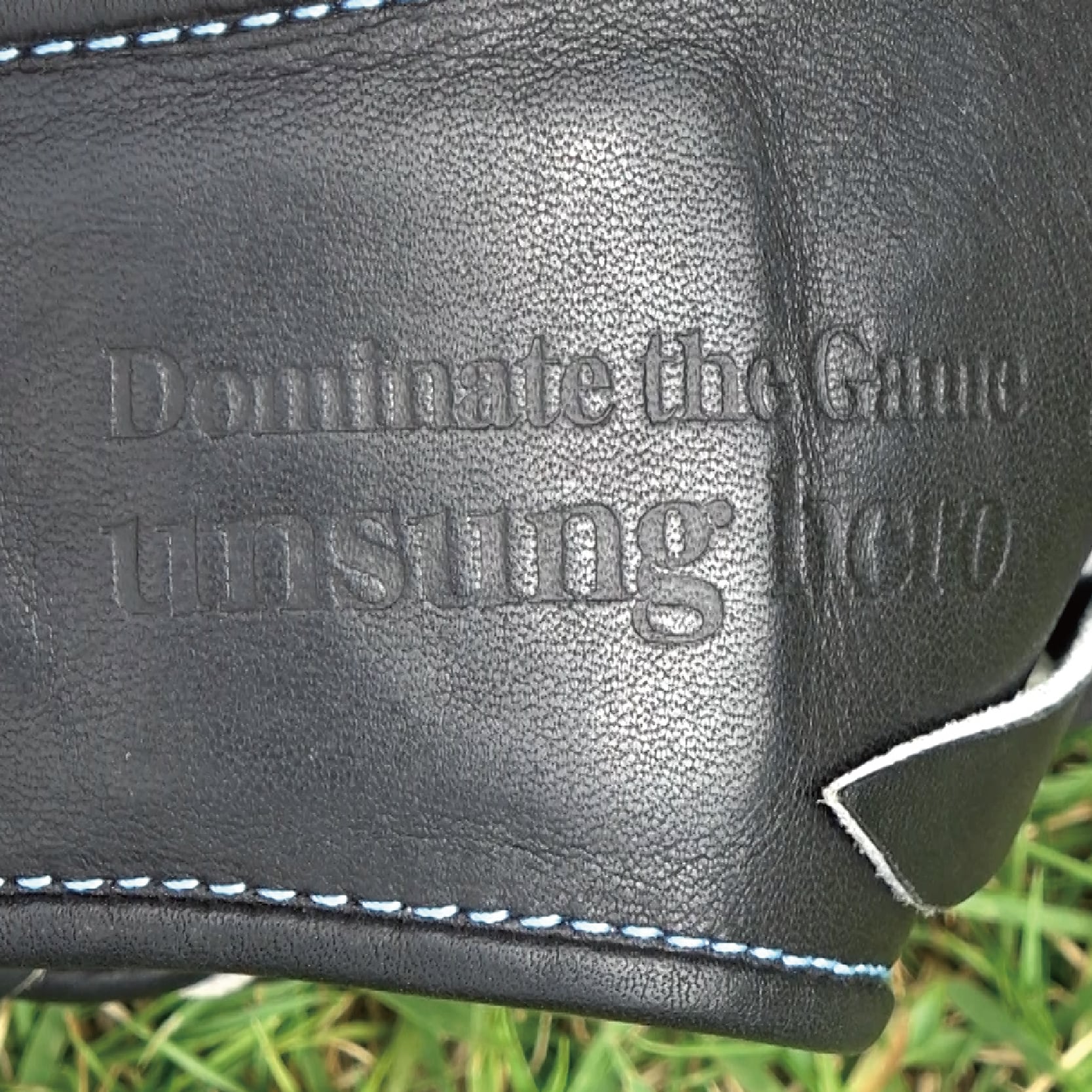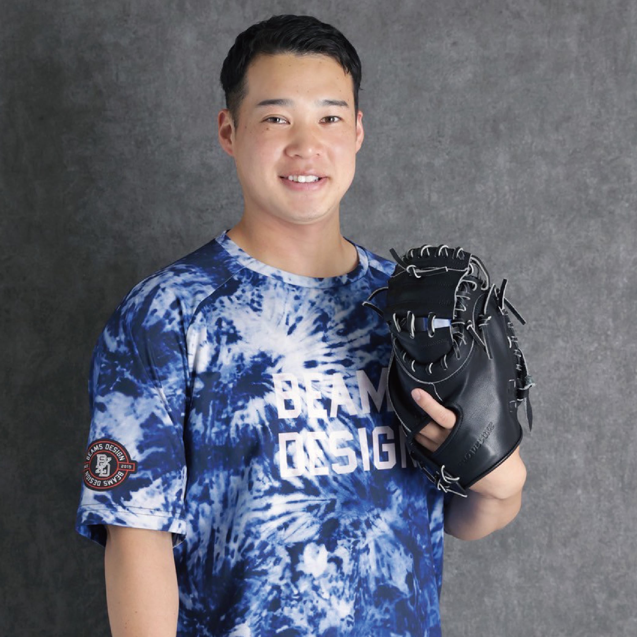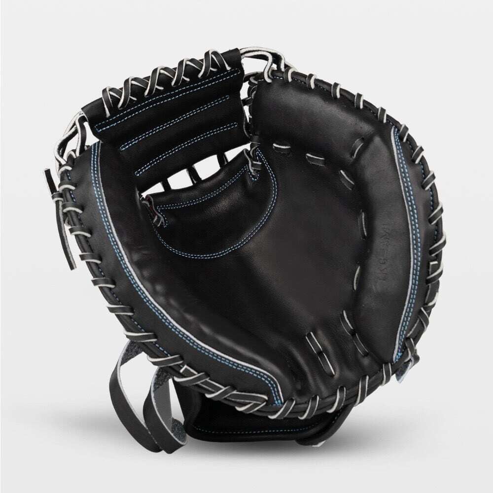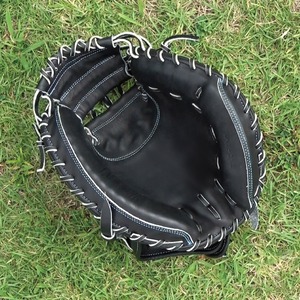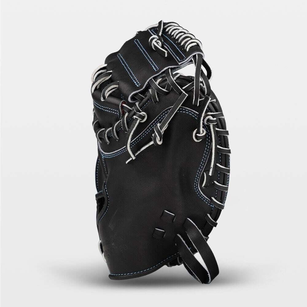 ラベルは小指側に配置し、ミットの被りを防ぎつつ、見た目もスマートに。シンプルながら存在感のある、飽きのこないデザインです。