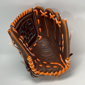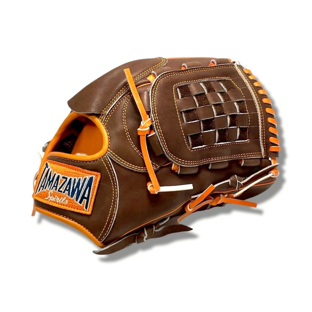 【硬式】玉澤 投手用(ピッチャー用) グローブ TMG-N3V1 縦型 バスケットウェブ(本体:Dブラウン 紐:オレンジ)|タマザワ