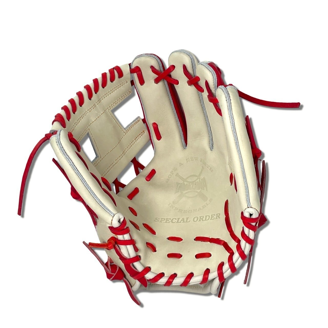 【オンライン限定】 軟式内野手グローブ (本体:レッド×Lグレー 紐:レッド)|タマザワ