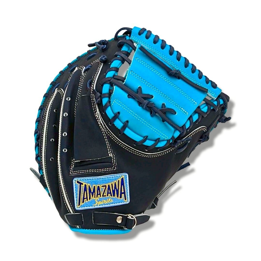 【玉澤】 ソフトボール キャッチャーミット兼ファーストミット用 TSF-NS145L(本体:ネイビー×サックス 紐:ネイビー)|タマザワ
